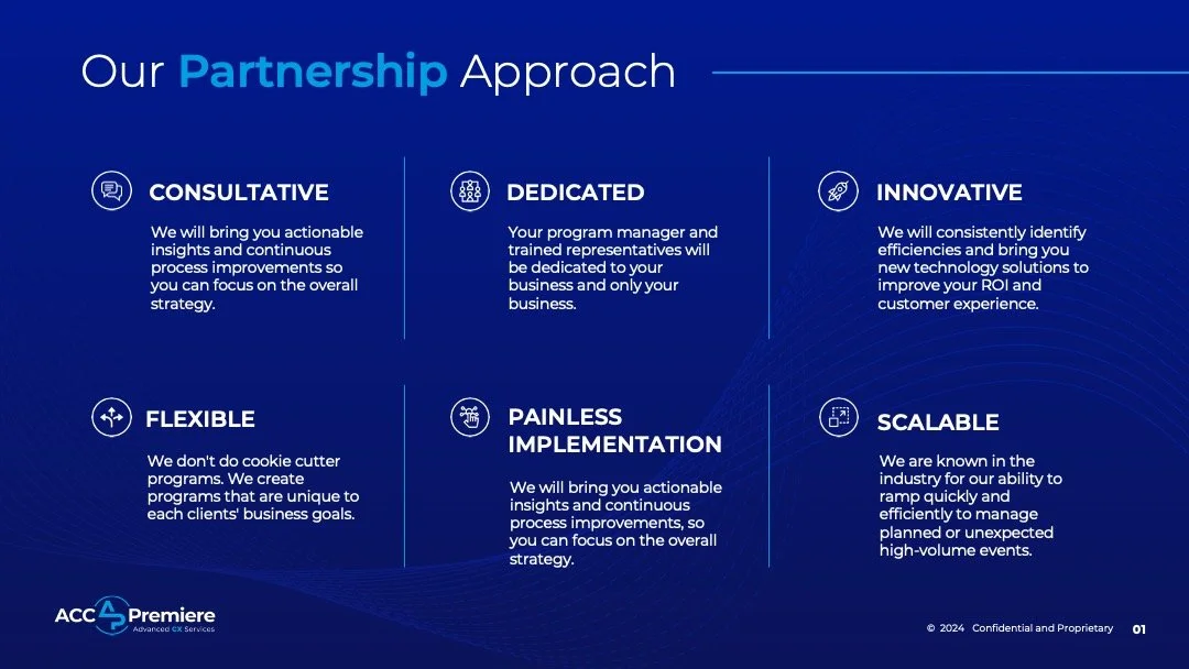 ACC/Premiere brand needs to present a more modern and advanced attitudeThe existing brands (Premiere Response and ACC) may appear as second tier